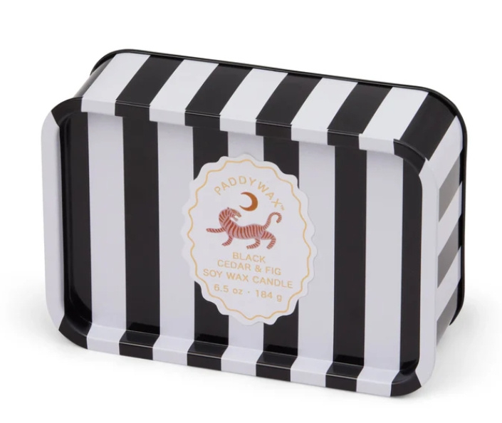 paddywax tiger tin candle - black cedar & fig